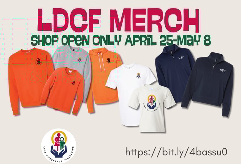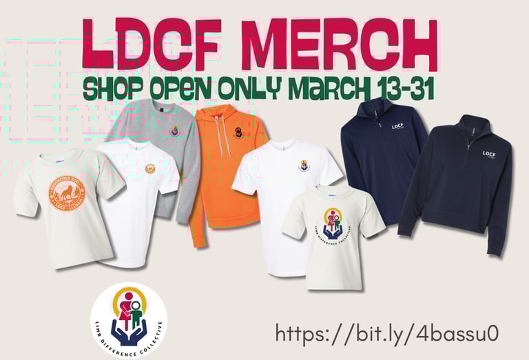 April's Limb Loss & Limb Difference Awareness Month is almost here, and we’re celebrating with something special: our limited‑edition LDCF 2026 merchandise shop, created in partnership with Blink Tees, a local print shop that shares our commitment to community, visibility, and joy.