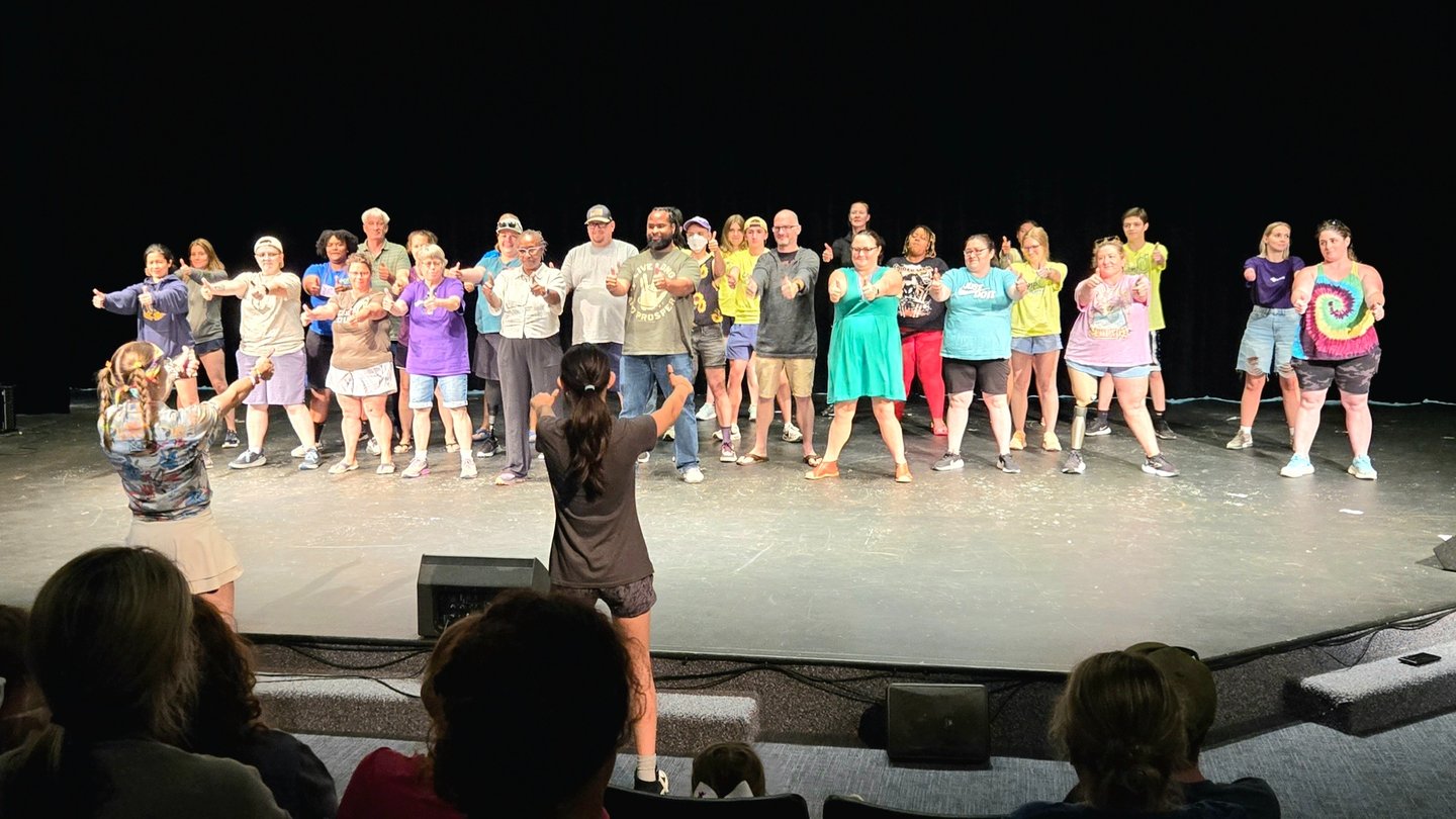 When the spotlight hit the stage, she delivered with a little bit of timidness, but a whole lot of joy, crafting a short story full of energy, laughter, and just a little bit of mischievous charm. I had to remind her to keep it PG (there were a lot of smooching puppets in early drafts!), but she absolutely delivered in the moment. Her confidence to get up there, entertain a crowd, and own her creativity is exactly what makes this camp so impactful. The first year she didn't get what was going on. Year 2 she was all nerves going up and standing behind the other campers, last year she tried a little more fun on stage, and now here we are! It’s not just about learning life skills—it’s about stepping into yourself fully, supported by a cheering community. There were some amazing talents shared that night from dancing, singing, gymnastics, musicians, jokes, and the Para Cheer Spirit squad even performed, too!